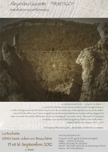 La Rochette, un site non accessible mais visible depuis la route, a été l’inspiration d’une toile d’araignée que je viens d’installer. Il est également prévu qu’un slackliner (funambule) parcourt l’ensemble de l’installation et qui permettra aux spectateurs d’appréhender la monumentalité de l’oeuvre.