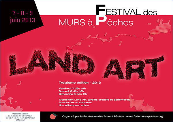 Le 9 juin 2013 dans les fameux Murs à Pêches de Montreuil, paysage remarquable classé au titre des sites et paysages, aura lieu la première exposition de Land Art, jardins créatifs, verticaux et éphémères.
